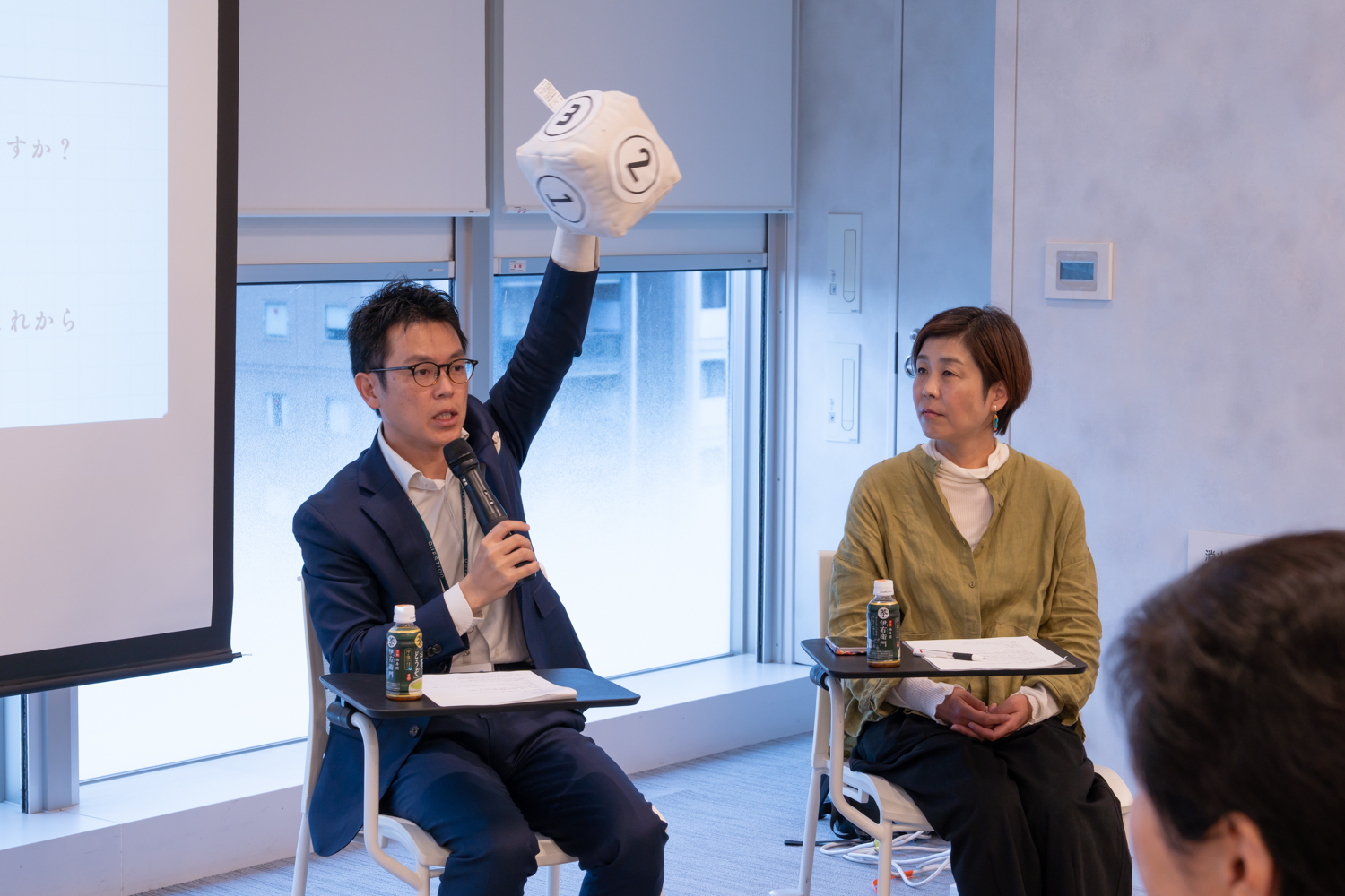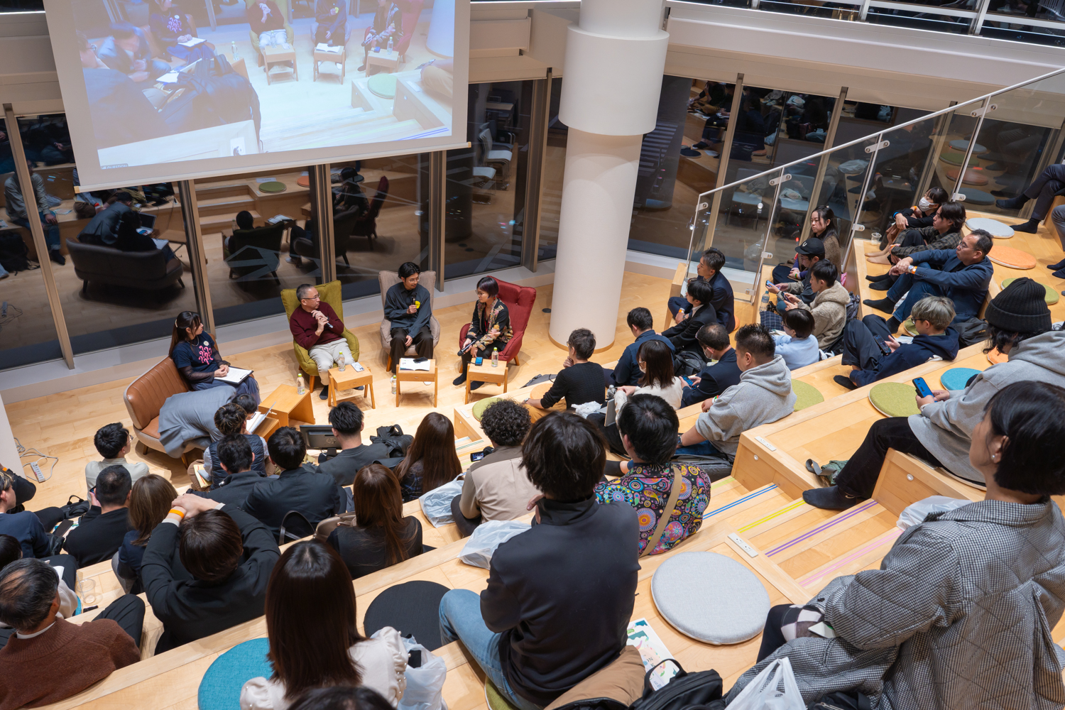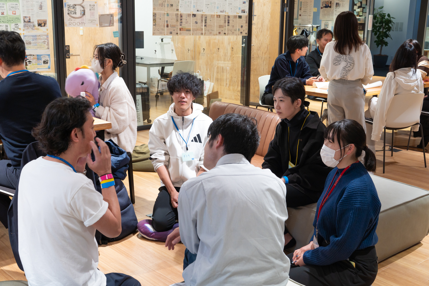 「自分にあった職業を見つけられる授業や、AIにはないエラー力を活かしたしょうもないものをつくる授業があったら面白いのでは?」「自分の人生を豊かにするのが成績表なのではないか。だから自分で振り返って自分で評価するのはどうか」などの意見が出たダイアローグ。学生も社会人も垣根なく未来の教育を自由に語り合った姿が印象的でした。