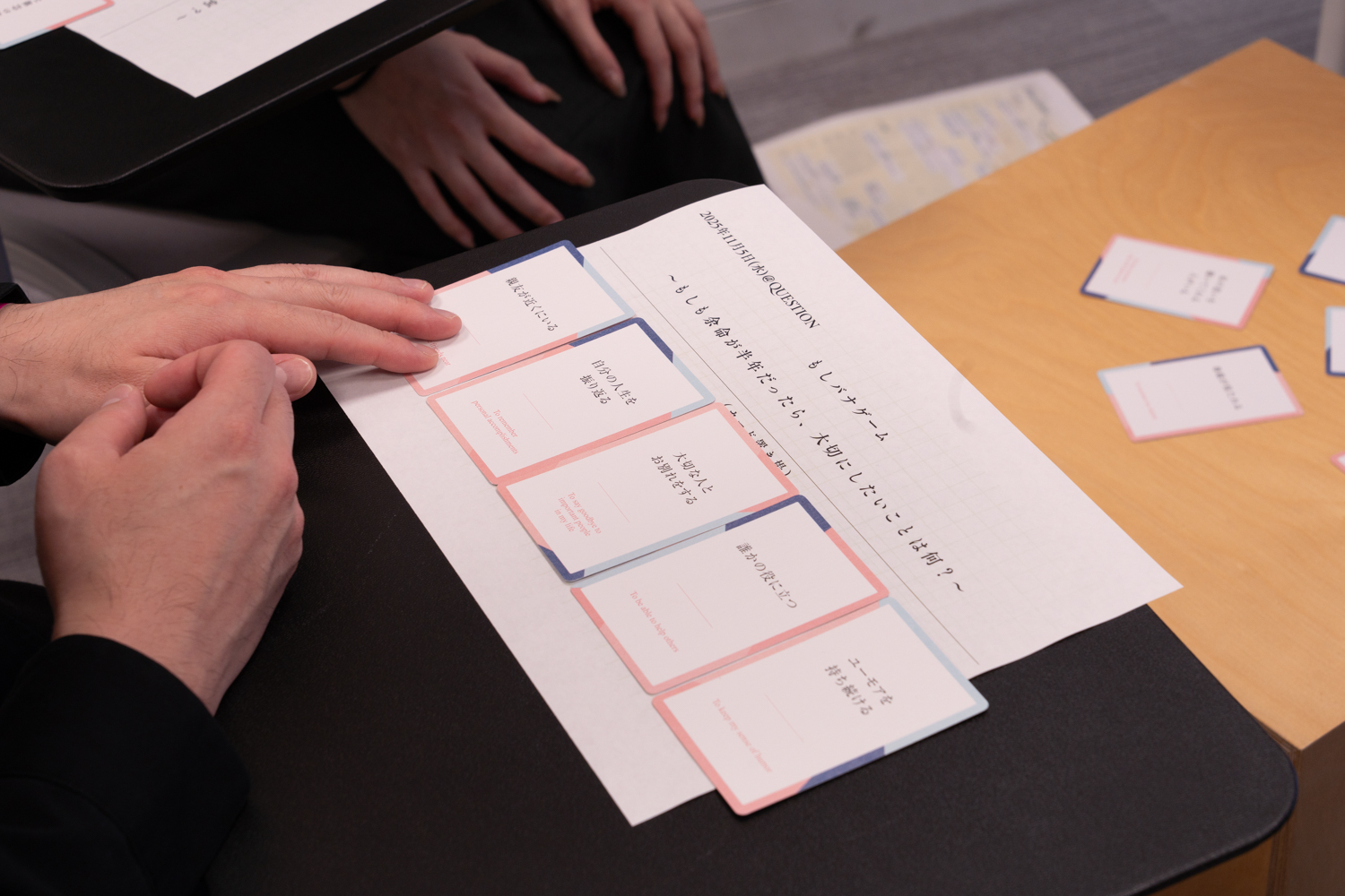 トークセッションの後は、グループに分かれて人生の最期にどう在りたいかを考える「もしバナゲーム」を実践。もし自分に残された時間が限られていたら、どんなことを大切にしたいかを、カードに出された言葉に答えながら、価値観や想いを分かち合いました。