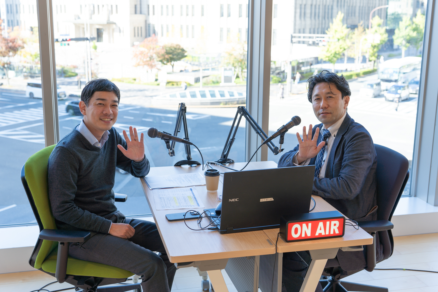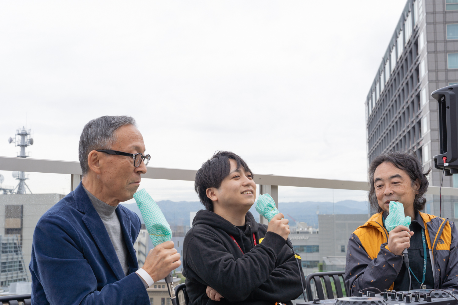 5日のゲストは一般社団法人光と音・環境文化研究院の里中勝司さん(左)、株式会社LiveALifeの山田秀人さん(右)。6日のゲストは株式会社TBWA HAKUHODOの田貝雅和さん、株式会社カタルシスの山本周雅さんだった