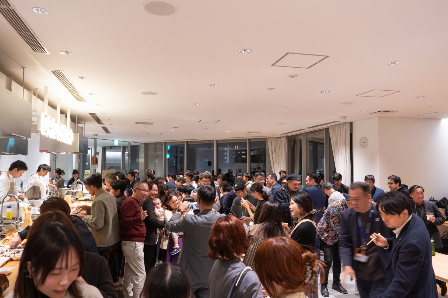 榊󠄀田隆之理事長の乾杯でスタート!これまでQUESTIONで参加したイベントの思い出話もしながら、親睦を深めた