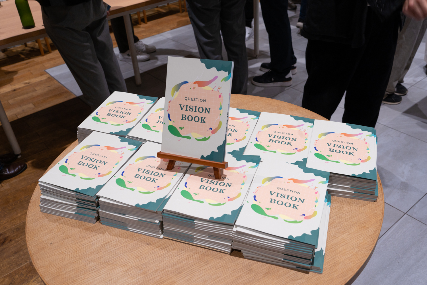 ▼5周年に合わせてビジョンブックを制作しました!積み重ねてきた5年間を振り返りながら、これから描いていく未来をまとめました。QUESTIONにお越しの際はぜひお手に取ってください。