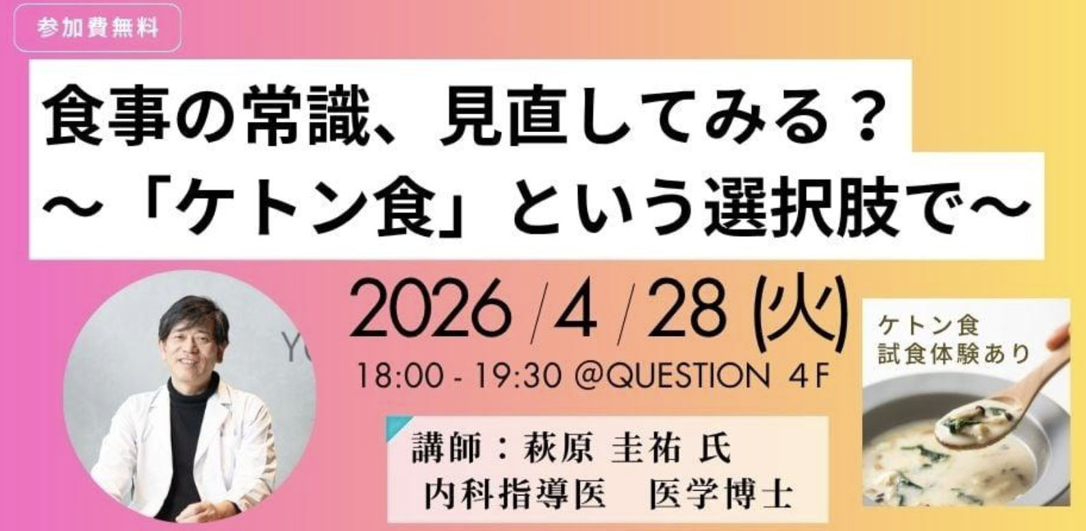 ※本セミナーは情報提供を目的としたものであり、特定の食事法の効果を保証・推奨するものではありません。
